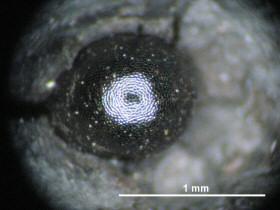 Bei den gefundenen Samen handelt es sich um hochglänzende, tiefschwarze Kügelchen von ca. 1 mm Durchmesser. Bei über 30-facher Vergrößerung zeigt sich eine genarbte Oberfläche (die weiße Reflexion resultiert aus der Binokularbeleuchtung). Sie wurden eher zufällig bei der Suche nach Kiefernnadeln in der Kohle entdeckt. Mit diesen Funden ist die Existenz der Wasserfalle im Tagebau Garzweiler erstmalig belegt.