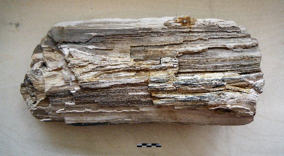 Im Januar d. J. wurde im unteren Abschnitt dieser Schichten, der sog. Jüngeren Hauptterasse, ein außergewöhnlich großes Stück eines verkieselten Holzes gefunden. Ein Mitarbeiter der Abteilung Produktion, H. Heinz Meisen, fand das Stück bei seiner tägl. Tagebaubefahrung auf der 1. Sohle. Nach der Meldung des Fundes, stellte er ihn spontan der wissenschaftlichen Bearbeitung zur Verfügung- vielen Dank für die Überlassung des Fossils!