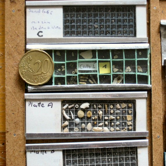 Fertige Sammlungssysteme? Spezielle Plastikschachteln? Gekaufte Etiketten? Industriell gefertigte Frankezellen? Plummerzellen aus dem Zubehörhandel? Professionelle Siebe für Mikrofossilien? - Fehlanzeige auf breiter Front!