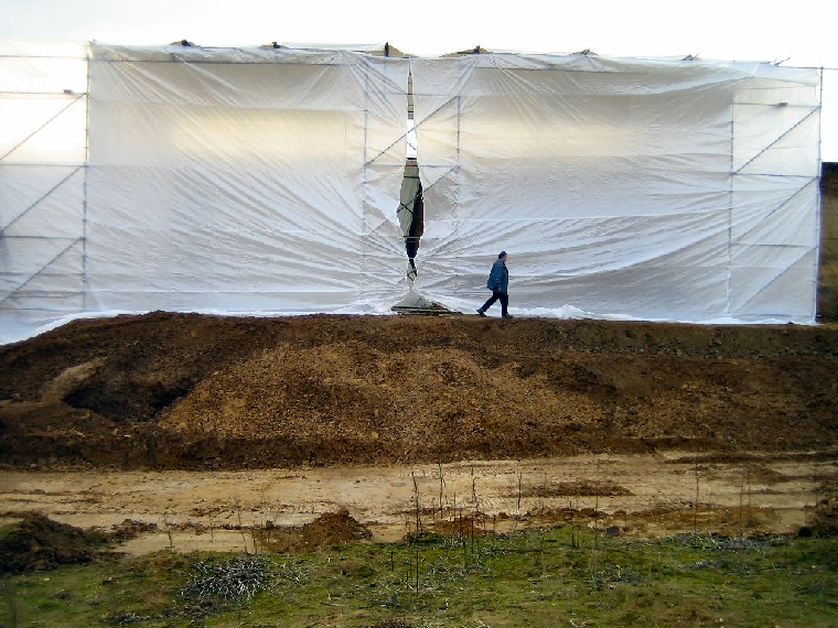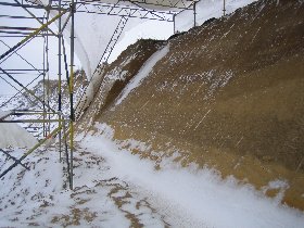 | Nach dem wohlverdienten Weihnachtsurlaub ging es in der dritten Januarwoche 2006 weiter. Wir waren der festen Überzeugung nun schon fast zum Endspurt anzusetzen! Aber: Es gab nur drei frostfreie Tage - die fünfte Reihe war geschafft - und anschließend lähmte Ostwind mit arktischen Temperaturen für über drei Wochen jeden Fortschritt unserer Arbeiten, so dass es erst Mitte Februar weiterging. | ||