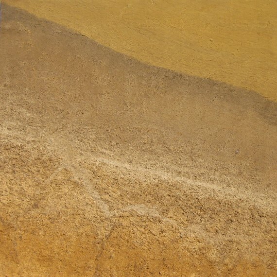| Der Baggerführer hatte perfekte Arbeit geleistet! Der Neigungswinkel war genau eingehalten und die Fläche glatt wie ein Spiegel. Wir, Jürgen Bläser und ich, haben uns diese riesige, glatte Böschung am nächsten Tag von allen Seiten angeschaut und erst einmal auf uns einwirken lassen; an diese Ausmaße mussten wir uns wirklich gewöhnen. Unsere über 100 Lackabzüge, die wir im Tagebau Garzweiler seit 2001 angefertigt haben, waren üblicher Weise 60 x 80 cm groß und nun - eine ganze Wand von erschreckender Dimension. | ||