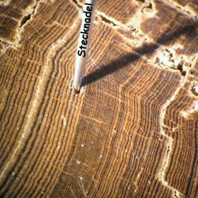 etwa dem individuellen Alter des Baumes entspricht. Ein Wachstumsring spiegelt