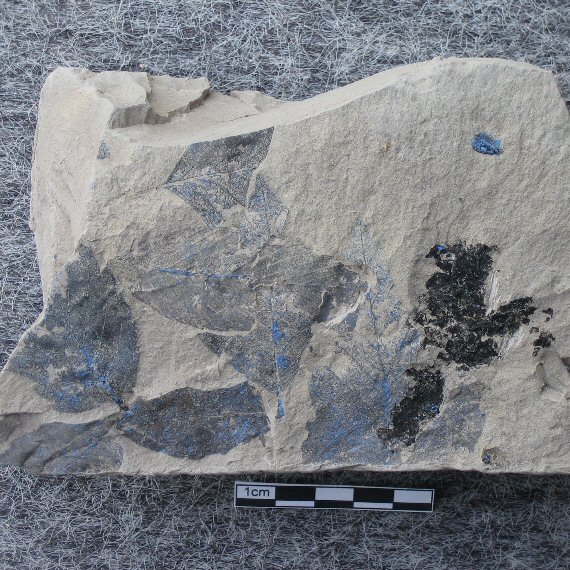 Hierzu zählen z. B. die durch Vivianit blau gefärbten unterpliozänen Blätter aus dem Tagebau Hambach sowie das großes Stammstück einer Zypresse.