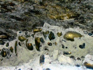 - Pyritisierte Feuersteingerölle als Einspülung im Flöz Frimmersdorf