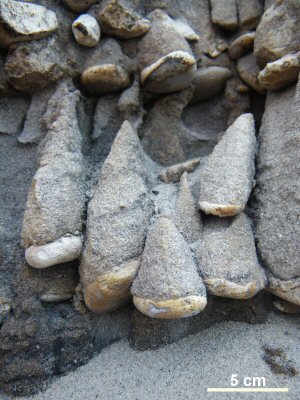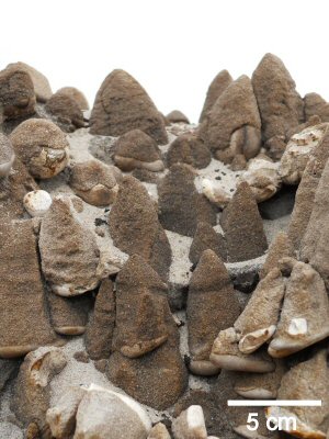 Kegelförmige Einkieselungen im Liegendsand von Flöz Morken I (unt./mittl. Miozän)